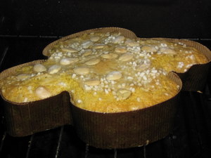 Porre a fontana la farina, lo zucchero, la vanillina e il lievito, intorno disporre il burro a pezzi e al centro le uova. Impastare velocemente gli ingradienti aiutandosi con un po' di latte se necessario, disporre il composto nello stampo; sbattere a parte il bianco rimasto con 3/4 cucchiai di zucchero semolato, disporlo sulla colomba , decorare con mandorle e zucchero in granella quindi infornare per 30 min, controllare se possibile senza aprire il forno quindi proseguire la cottura e ricontrollare con uno stecchino per assicurarsi che sia cotta internamente. Lasciar raffreddare e servire...