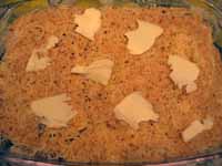 Infine salare e pepare leggermente (visto chei formaggi sono saporiti) e ricoprire il tutto con del pane grattuggiato e dei fiocchetti di burro.