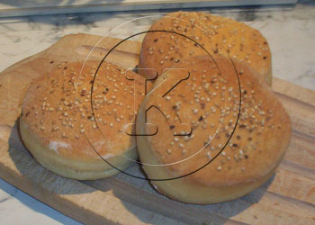 Fondere il burro a bagnomaria o nel microonde e lasciarlo intiepidire. Sciogliere il lievito nell'acqua. Impastare tutti gli ingredienti, aggiungendo per ultimo il sale. L'impasto risulterà molto morbido, ma dovrà essere lavorato finché non sarà più appiccicoso. Metterlo in una grande ciotola unta di burro e rivoltarlo, in modo che la parte unta sia verso l'alto. Coprire la ciotola con pellicola e metterla in frigo. Lasciar riposare almeno 8 ore (anche di più, fino ad un massimo di 5 giorni). Trascorso questo tempo, sgonfiare l'impasto e stenderlo ad uno spessore di circa 1 cm e mezzo. Con un taglia-biscotti da 10 cm di diametro ricavare 8 porzioni. Alternativamente, dividere l'impasto in 8 palline uguali e appiattirle. Mettere i panini, alquanto distanziati, su una teglia ricoperta di carta forno e lasciarli lievitare in luogo tiepido per circa un'ora: dovranno raddoppiare in volume. Spennellarli con burro fuso e cospargerli di semi di sesamo. Cuocere in forno a 200 gradi per circa 15 minuti.