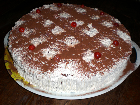 io l'ho ricoperta con panna,cacao amaro e amarene.